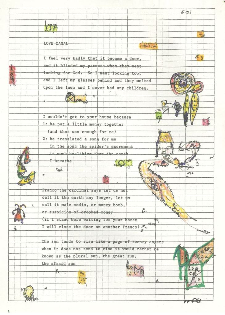MICHAEL BURKARD‘s books include Unsleeping (Sarabande, 2001) and Lucky Coat Anywhere (Nightboat, 2011). Books of his drawings are available through blurb books. They are called “one day my face” and “a flower with milk in a shadow beside it”.